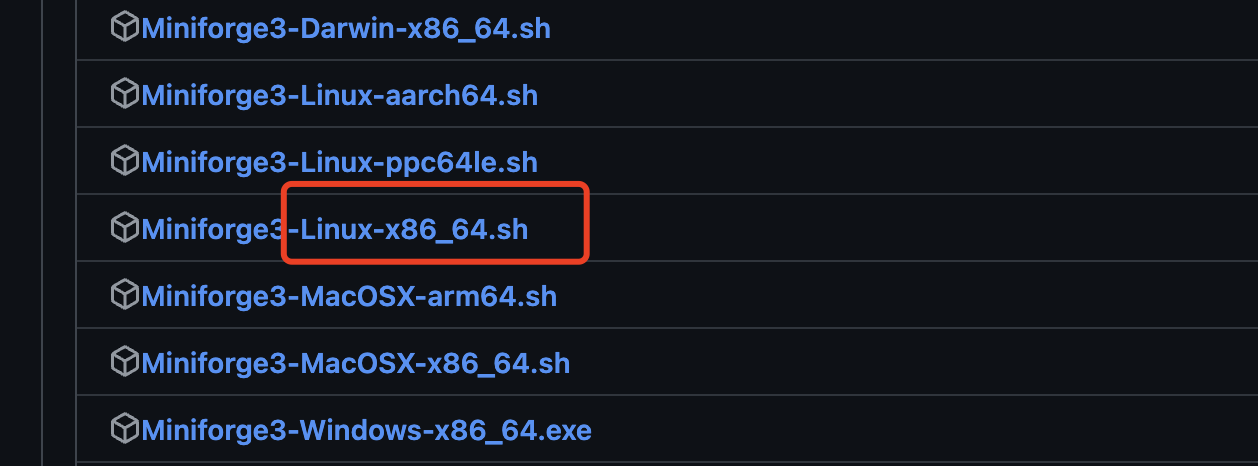 wget https://github.com/conda-forge/miniforge/releases/download/24.11.3-2/Miniforge3-Linux-x86_64.sh下载下来后赋予执行权限并执行: